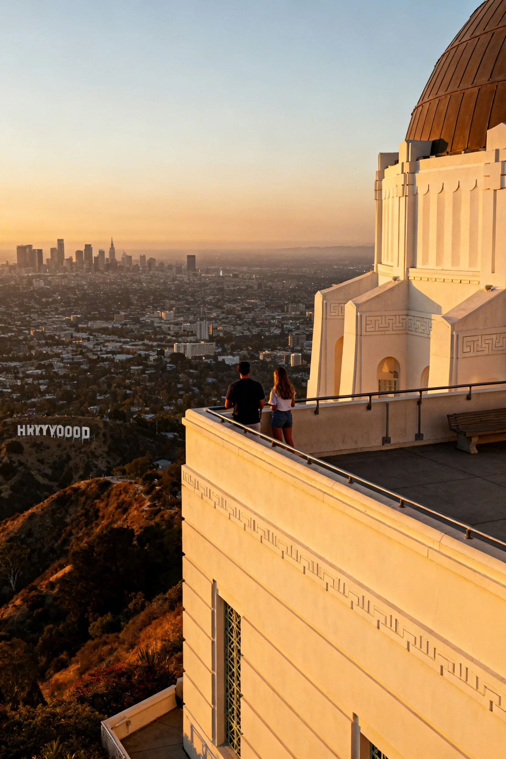 Go late afternoon so you get daylight views and a sunset glow over the skyline. Parking can be a mess on weekends—take the DASH Observatory shuttle from the Vermont/Sunset Metro station or arrive before 10 a.m. If you want a closer Hollywood Sign angle, pair it with a short hike like the Mt. Hollywood Trail (bring water and a hat).