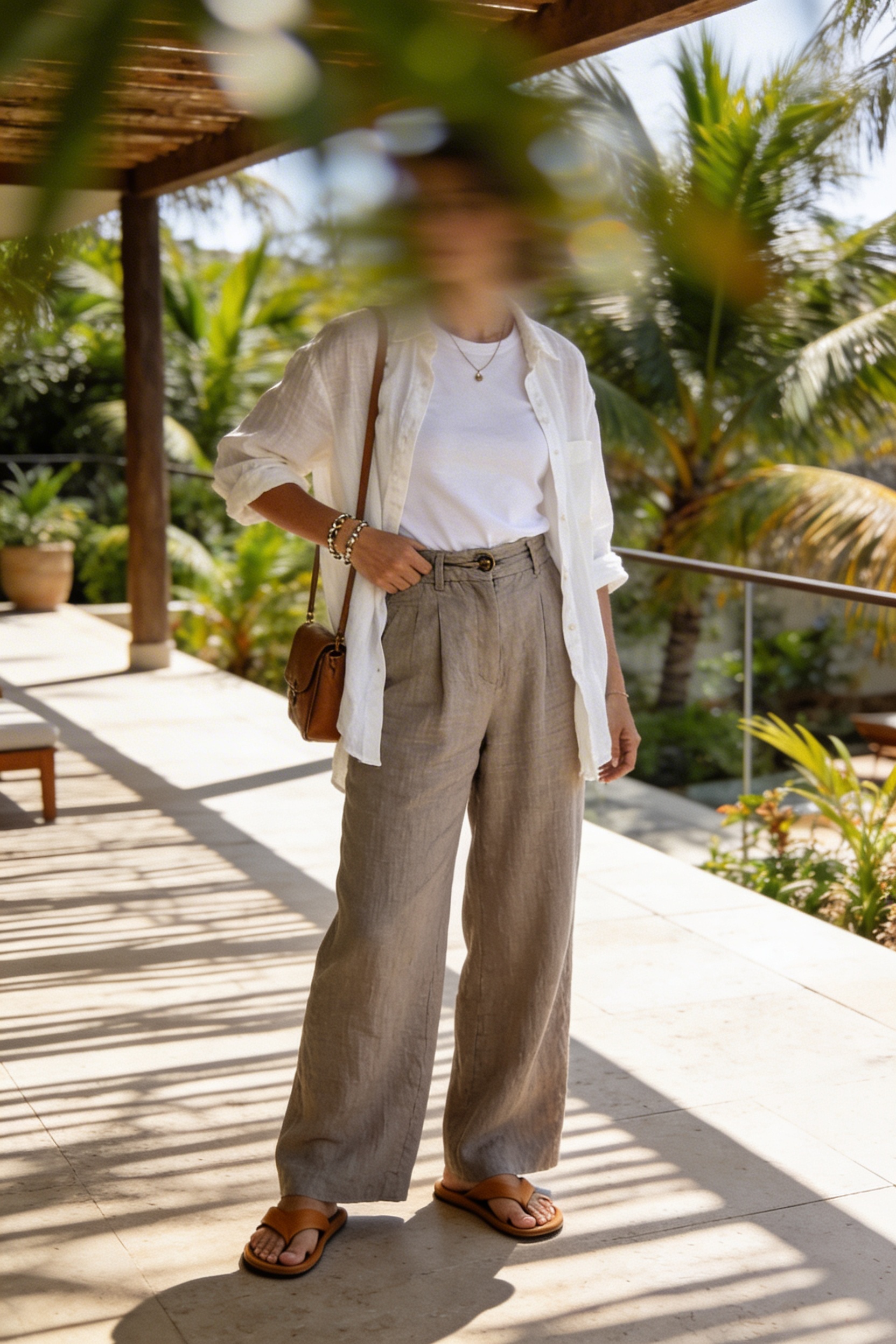 Pair a breezy linen button-down (worn slightly open or half-tucked) with tailored linen or cotton shorts and a simple ribbed tank underneath. Add flat leather sandals, a woven straw tote, and gold hoop earrings for an easy “resort but still practical” vibe. If you run hot, choose lighter colors and a looser fit so air can move. Comfort tip: pack blister patches—new sandals plus humid heat can be a sneak attack.