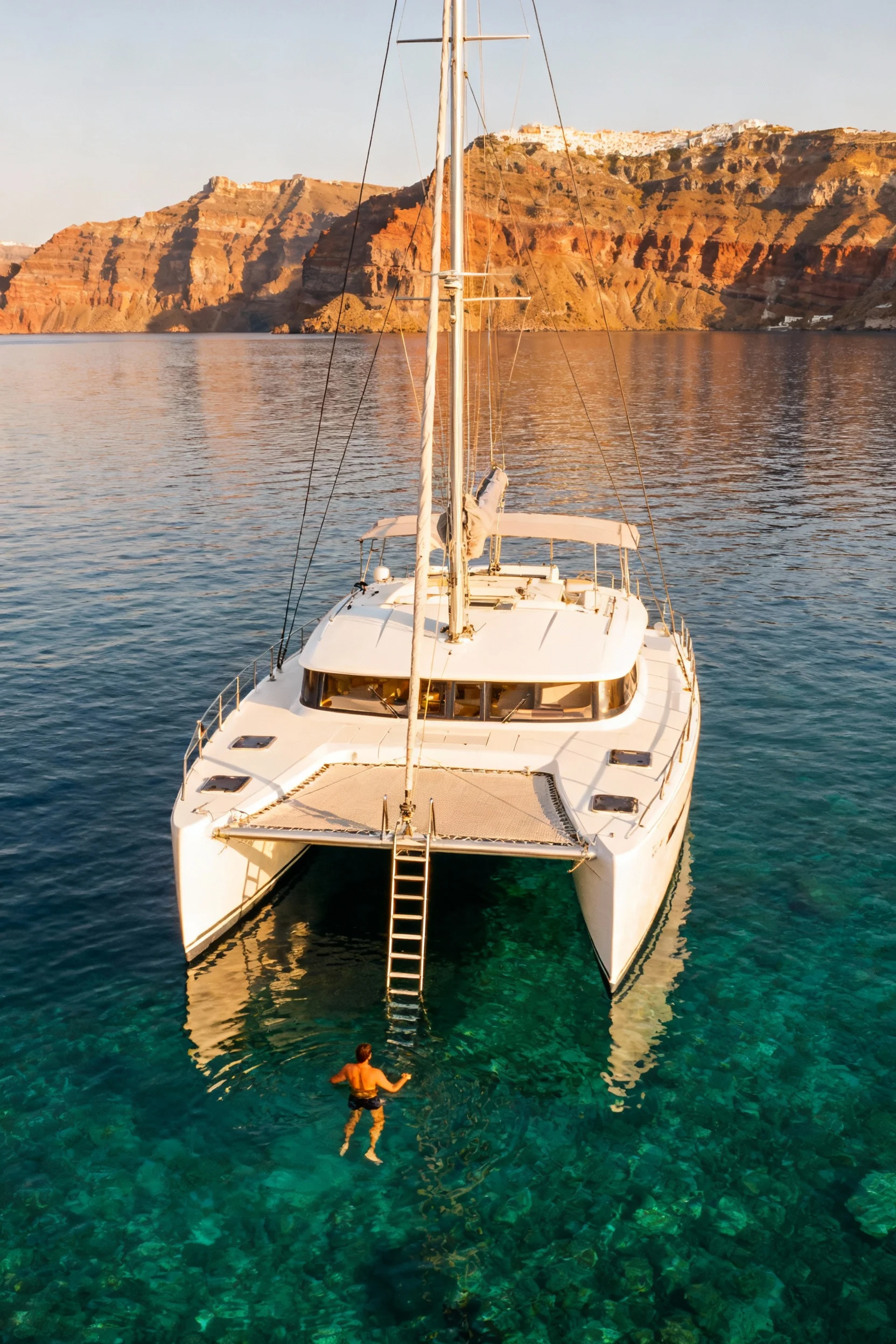 4) Book a Catamaran Cruise for Swimming, Hot Springs, and Caldera Views