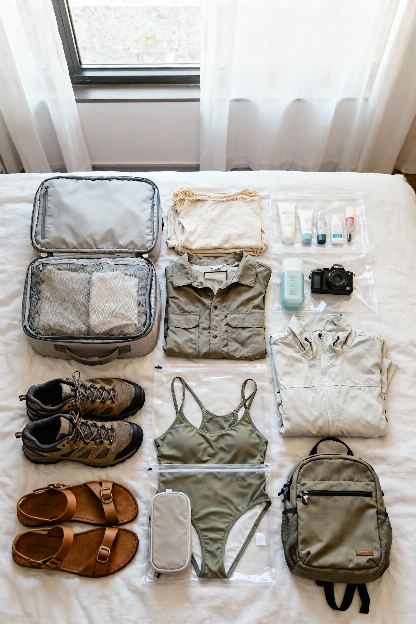 Stick to a neutral color palette and plan outfits you can re-wear in different combos. Bring one comfortable walking shoe, one nicer option, and a lightweight layer you can use on planes and chilly evenings. A compact toiletry kit, a packable tote, and laundry detergent sheets make carry-on travel realistic for 7–10 days.