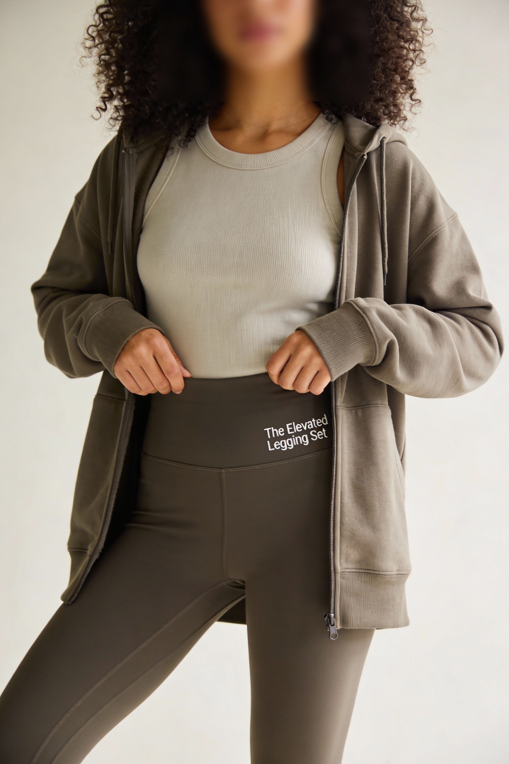 Start with a ribbed cotton or ponte long-sleeve top and high-waisted black leggings, then add an oversized cardigan or a lightweight trench for instant structure. Finish with clean white sneakers, a medium crossbody bag, and simple hoop earrings. If you run cold on planes, swap the top for a thin merino base layer and keep socks in your carry-on for extra warmth.