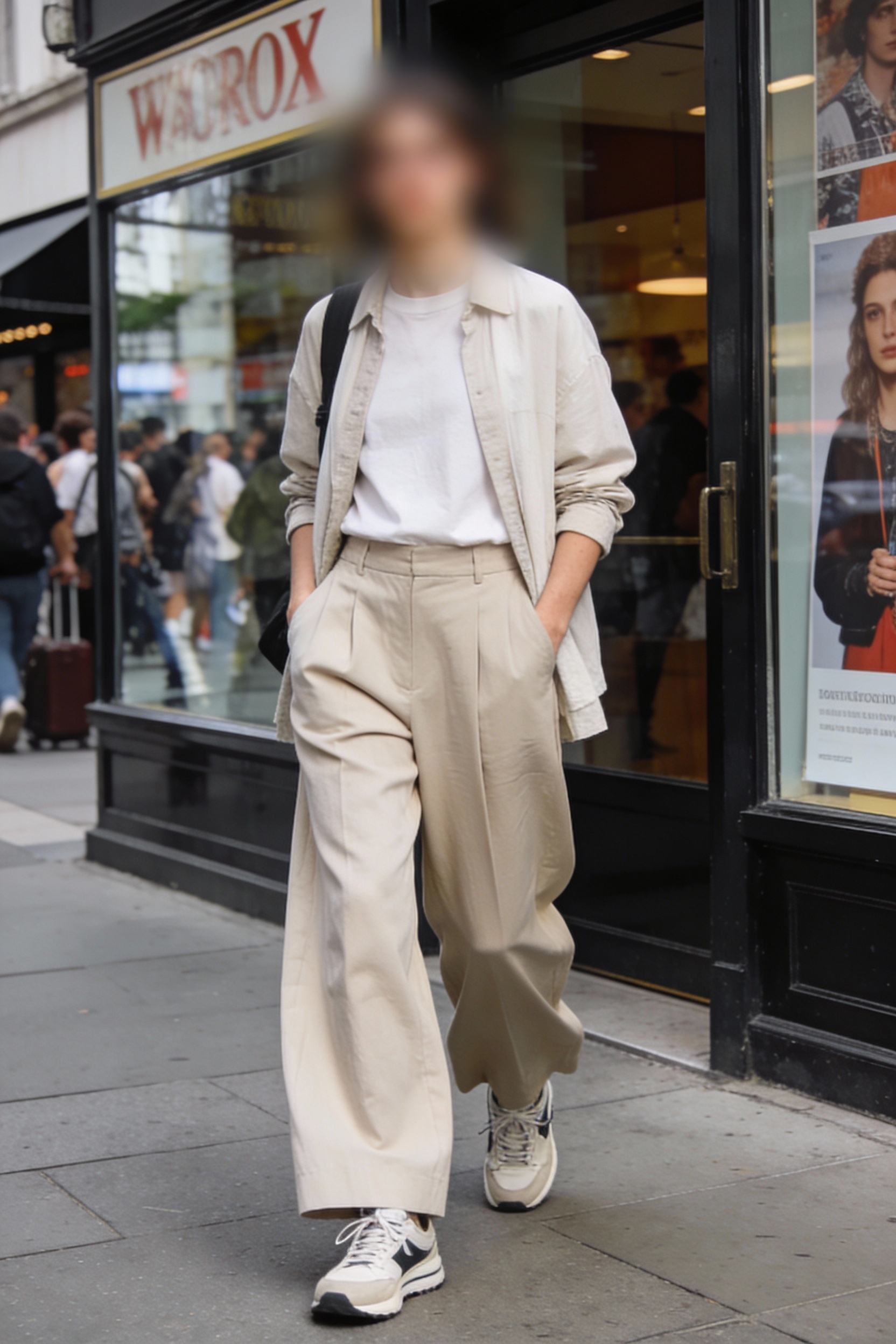 5) The Wide-Leg Trouser + Sneaker Pairing