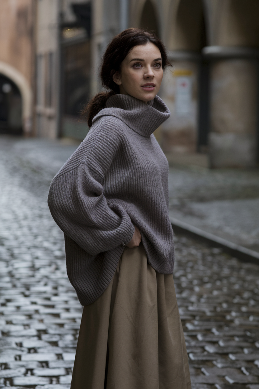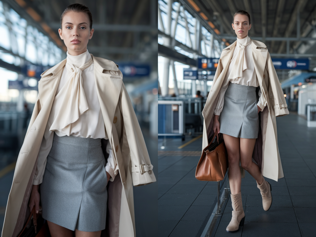 Choose a thin knit turtleneck tucked into a ribbed midi skirt, then add a long cardigan or a light wool-blend coat for warmth and movement. Ground it with chunky sneakers for comfort, carry a small shoulder bag that fits under the seat, and add a pair of sunglasses to instantly make the look feel travel-chic. Comfort tip: wear heat-tech or fleece-lined tights underneath for winter terminals and chilly flights. Avoid skirts with restrictive waistbands—look for elastic or knit so you can actually breathe during a long sit.