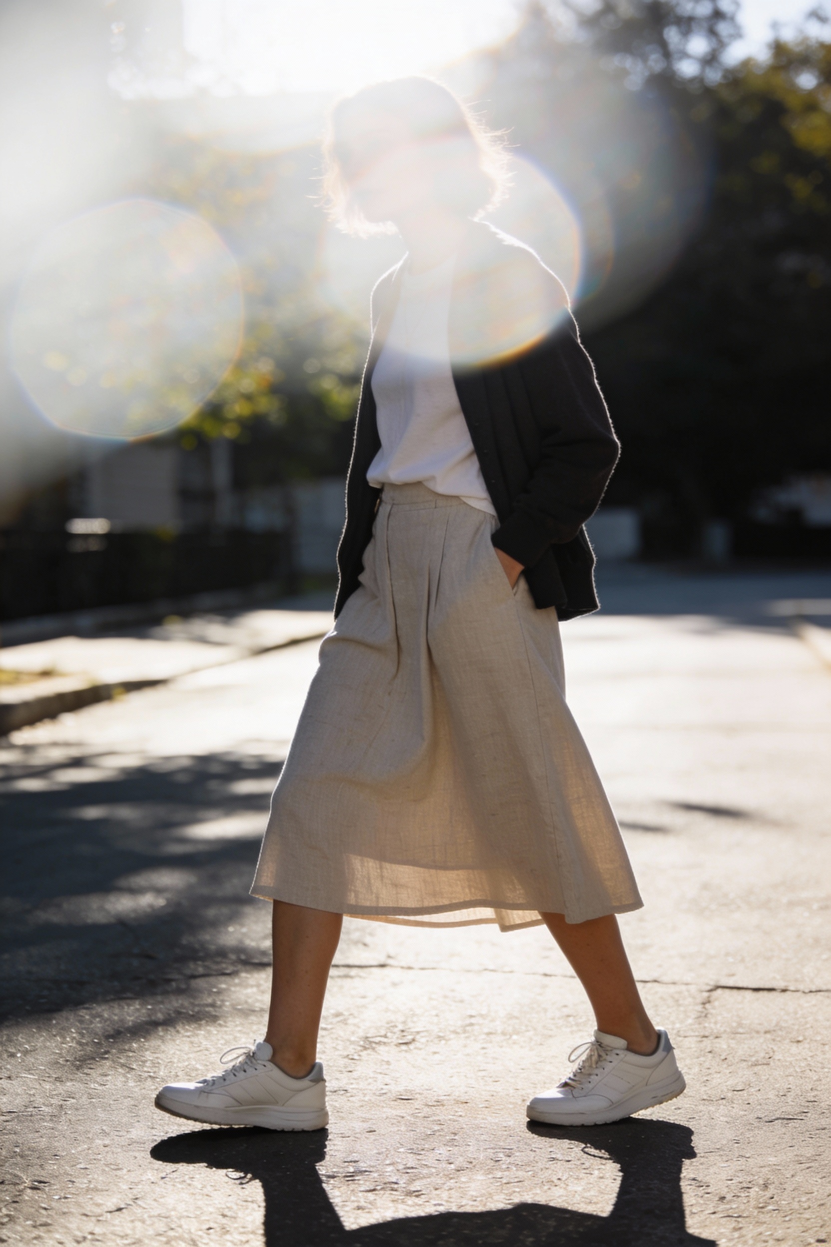 Go for a jersey or rib-knit midi dress as your base, then add a cropped bomber or relaxed cardigan for temperature changes. Wear comfortable sneakers, carry a crossbody sling bag, and add a simple watch to keep you on schedule without pulling out your phone. For unpredictable weather, bring a packable rain shell in your personal item and skip hems that drag on wet floors.