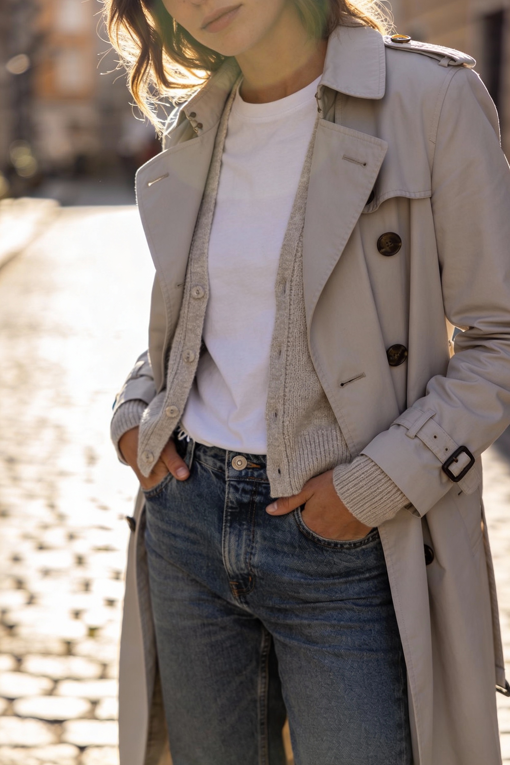 Pack in a capsule: two bottoms, two tops, one cozy layer, and one weather layer that all mix and match. Wear your bulkiest piece on the plane (like a trench or denim jacket) to save suitcase space, and keep a scarf or light sweater in your personal item for easy access. Choose a neutral color palette so you can swap pieces without overthinking.