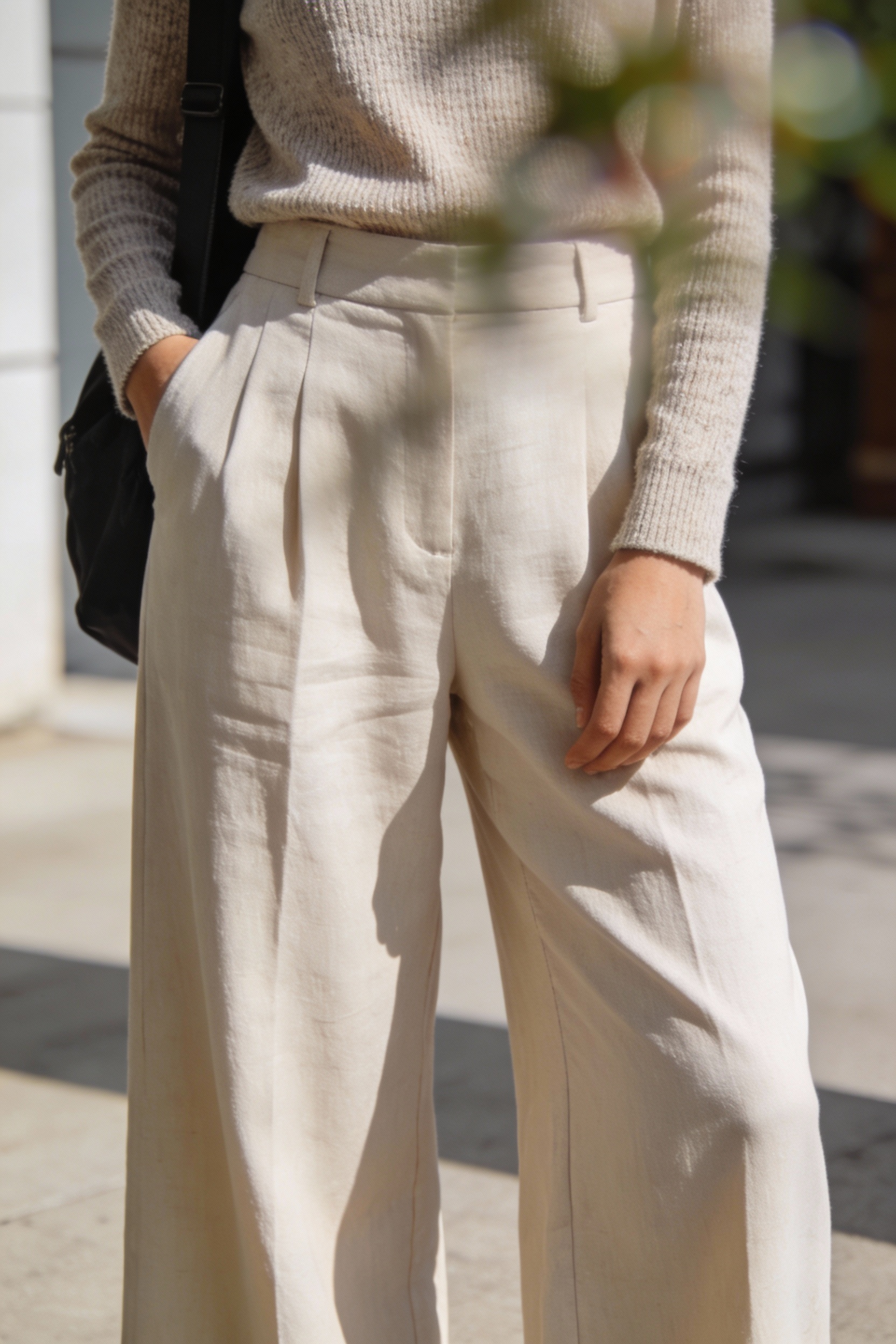 Pair knit wide-leg trousers (or relaxed ponte pants) with a lightweight crewneck sweater or fitted knit tee, then top with a structured denim jacket or soft blazer for a polished layer. Finish with cushioned loafers or sleek sneakers, a small backpack for hands-free boarding, and a silk scarf that doubles as a neck warmer. If you’re flying early, choose darker pants to hide coffee spills and keep the jacket handy for cold cabin air.