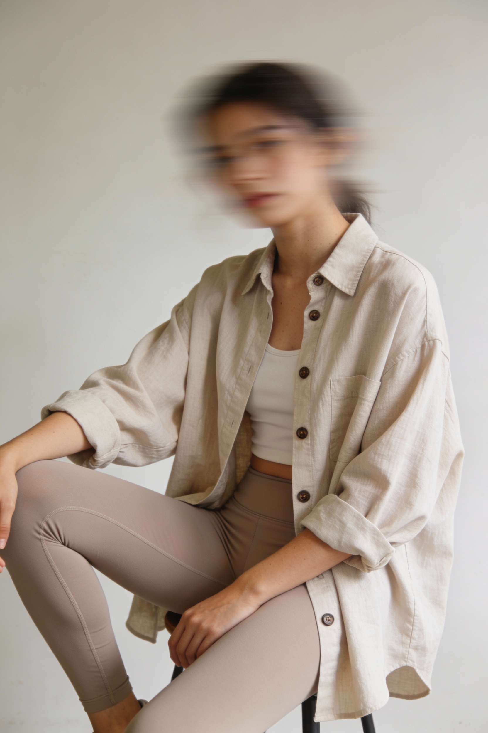 Start with high-waisted leggings and a breathable tee or fitted long-sleeve, then layer an oversized cotton button-down as your outer piece. Add supportive slip-on sneakers, a roomy tote that can hold your laptop, and a baseball cap to look pulled together with minimal effort. Tip: pick leggings with a wide waistband (no drawstrings) for long-haul comfort and less fuss during screening.