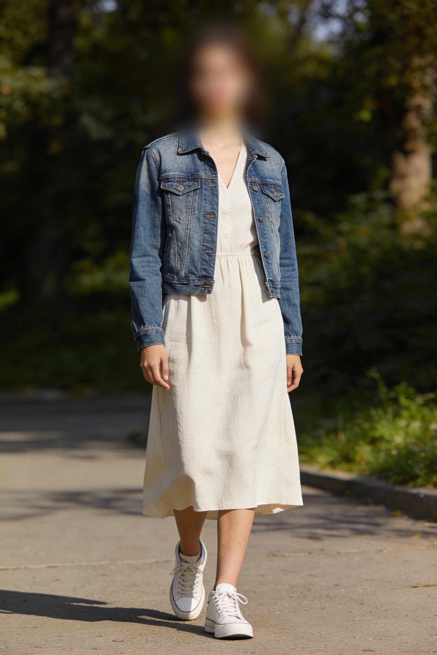Opt for a jersey midi dress or t-shirt dress (easy, stretchy, zero fuss) and layer a denim jacket or lightweight bomber for the terminal-to-taxi transition. Add supportive sneakers, a small crossbody bag for passport and phone, and a pair of sunglasses that instantly make you look refreshed. Practical tip: if you run cold, swap the denim jacket for a thin cardigan and add compression socks for longer flights.