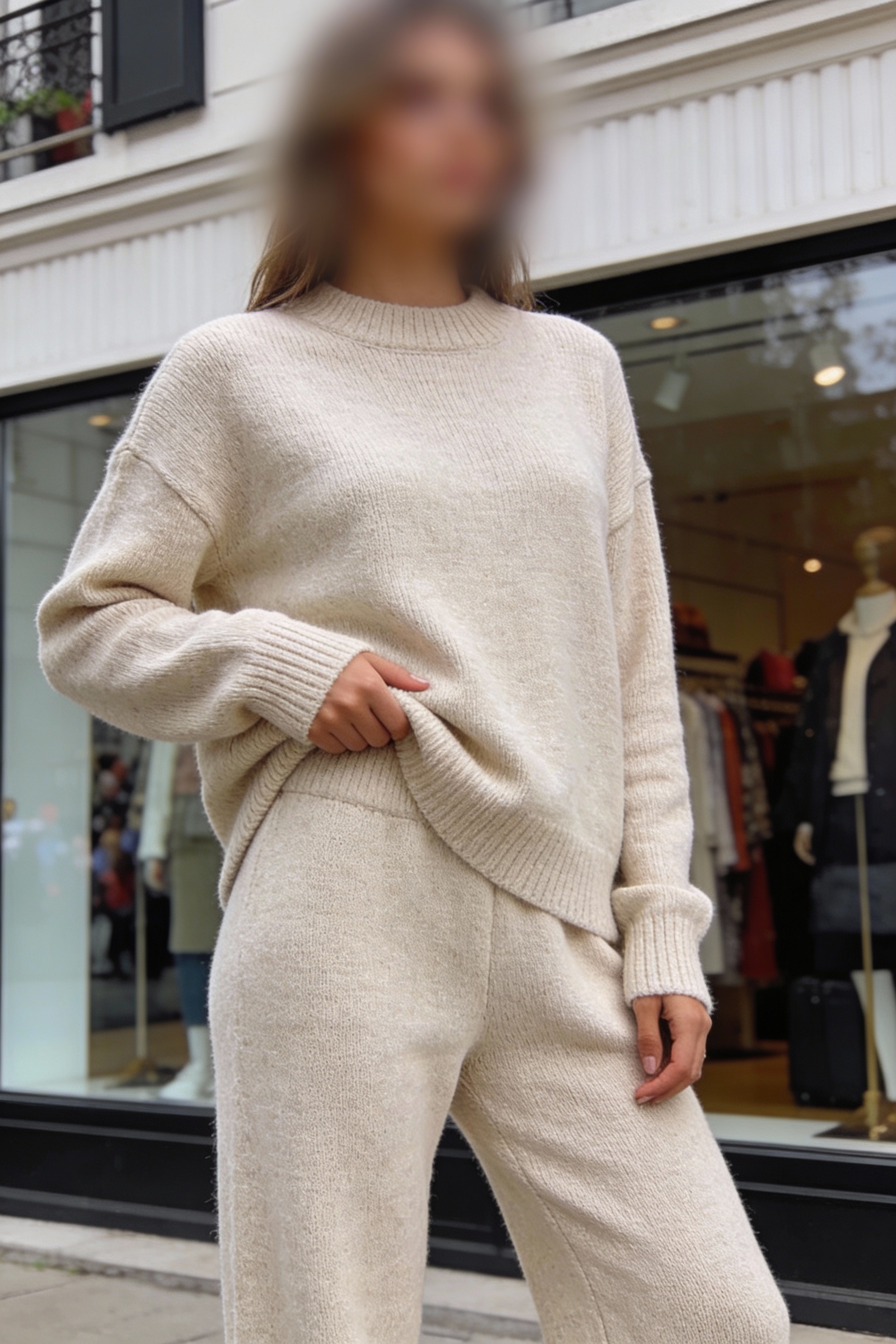 Wear a matching knit top and midi skirt or knit pants set (think ribbed or fine-gauge) and layer a packable puffer vest or denim jacket on top. Finish with cushioned slip-on sneakers, a medium-size backpack that fits under the seat, and a minimalist watch to keep you on schedule. Temperature tip: a vest adds warmth without restricting your arms, which is perfect for hauling luggage.