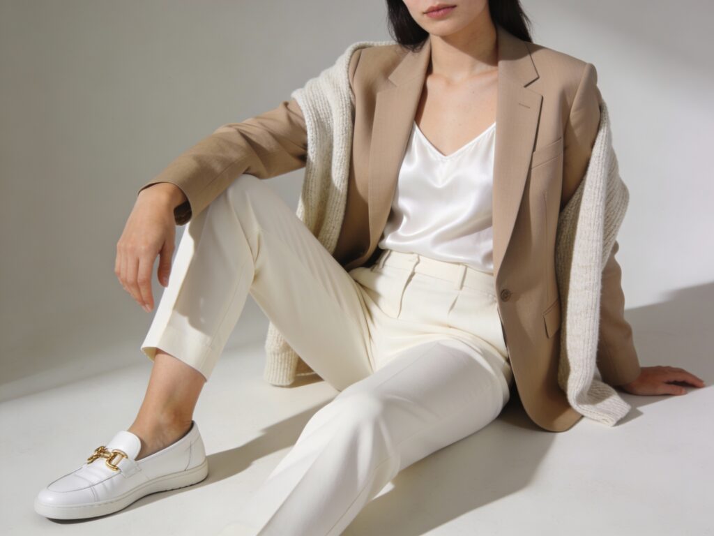 Choose high-waisted wide-leg trousers in a drapey fabric, styled with a crisp tee or thin knit top, and a classic trench coat for that “I travel well” energy. Ground it with comfy ballet flats or low-profile sneakers, carry a structured tote or work bag, and add a silk scarf (it doubles as a neck warmer on cold flights). Comfort tip: look for trousers with a flat front and hidden stretch so sitting for hours still feels easy.