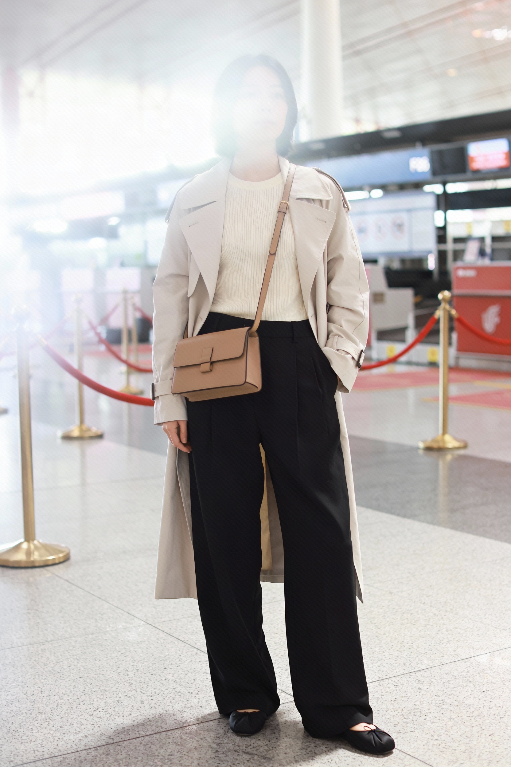 Try pull-on wide-leg trousers with a smooth knit top (think fine-gauge sweater tee), then add a light trench or longline coat for a streamlined look. Finish with cushioned ballet flats or low-profile sneakers, a structured tote, and a simple watch for a clean, classic vibe. For comfort, keep the trouser hem slightly above the floor so you’re not dragging it through security lines or rainy sidewalks.