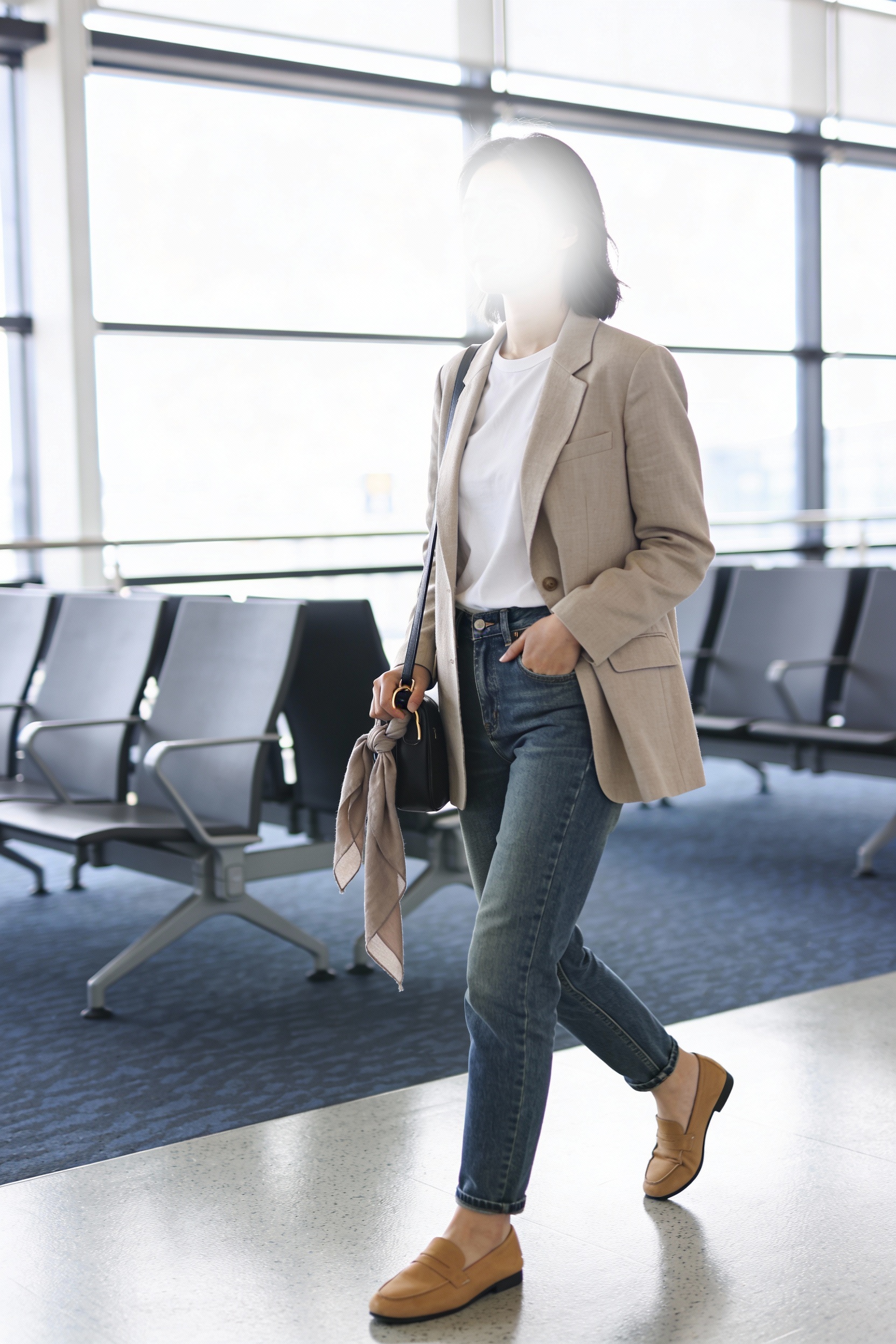 Pair a breathable cotton tee with straight-leg jeans and top it with an unstructured blazer that can double as a dinner layer. Add cushioned loafers or sleek sneakers, a crossbody bag for hands-free boarding, and a lightweight scarf that works as a wrap on the plane. Comfort tip: pick jeans with 1–2% elastane and avoid super-tight waistbands for long sits.