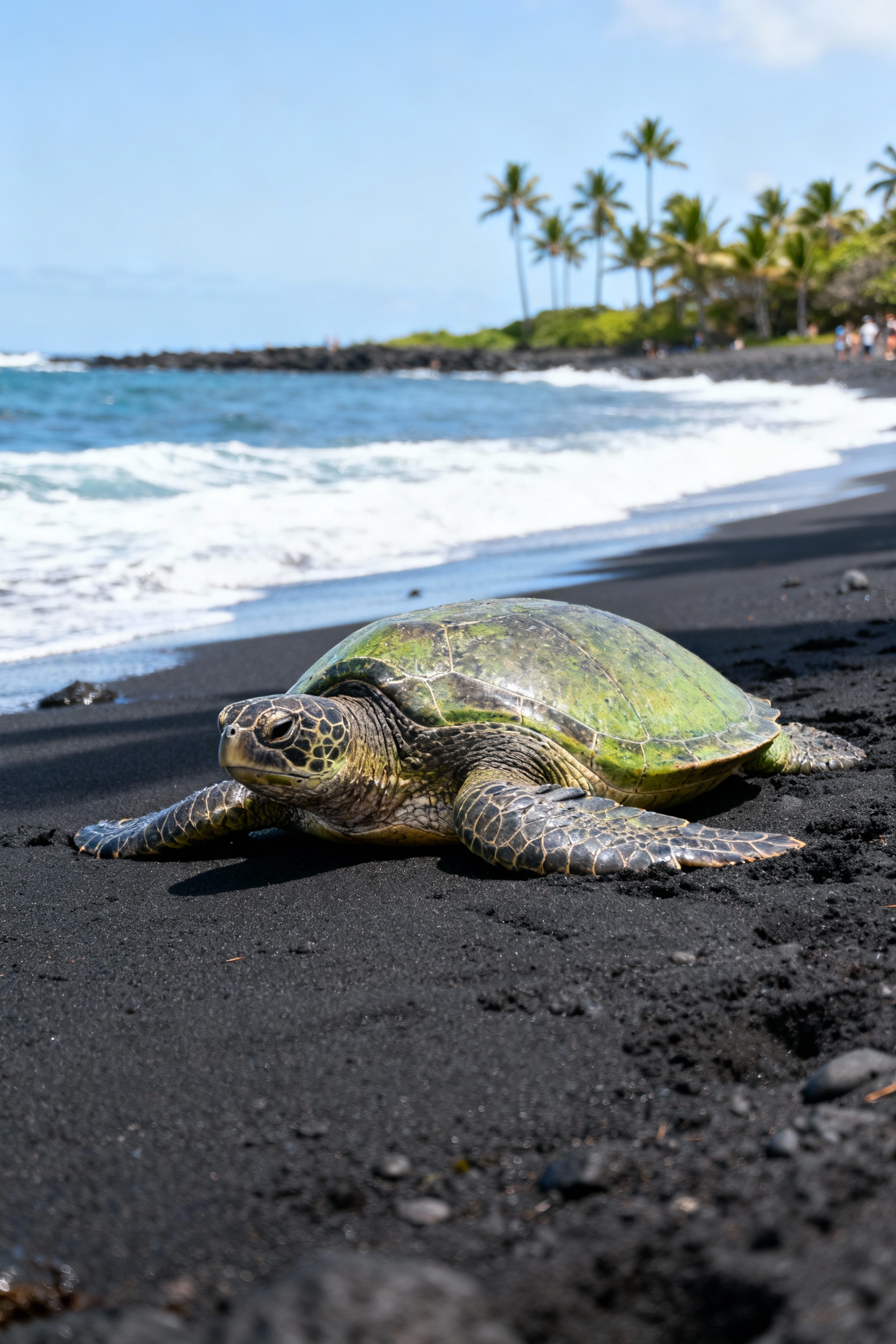 5) Punaluʻu Black Sand Beach + Sea Turtle Spotting Road Trip