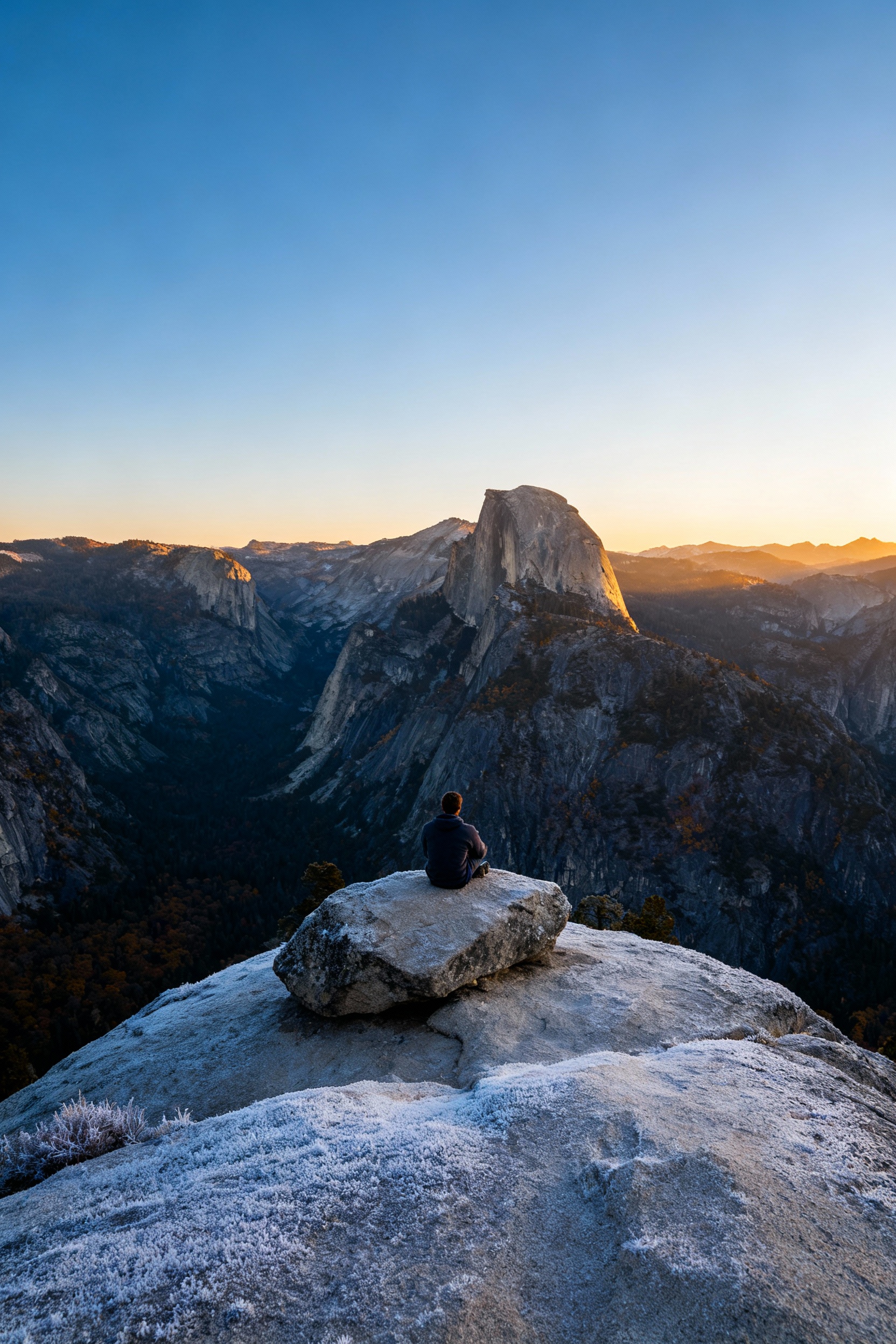 This is one of the best “wow-per-effort” hikes in Yosemite: around 2.2 miles round trip with a steady climb to a full panorama of Half Dome, El Capitan, and the high country. For fewer people, aim for sunrise—arrive at the trailhead in the dark and hike up with a headlamp so you’re on top as the light hits Half Dome. Bring gloves and a beanie; October mornings can feel seriously cold up there. If you’re sensitive to altitude or steep climbs, pace yourself and bring a snack—this is a sit-and-stare kind of view.
