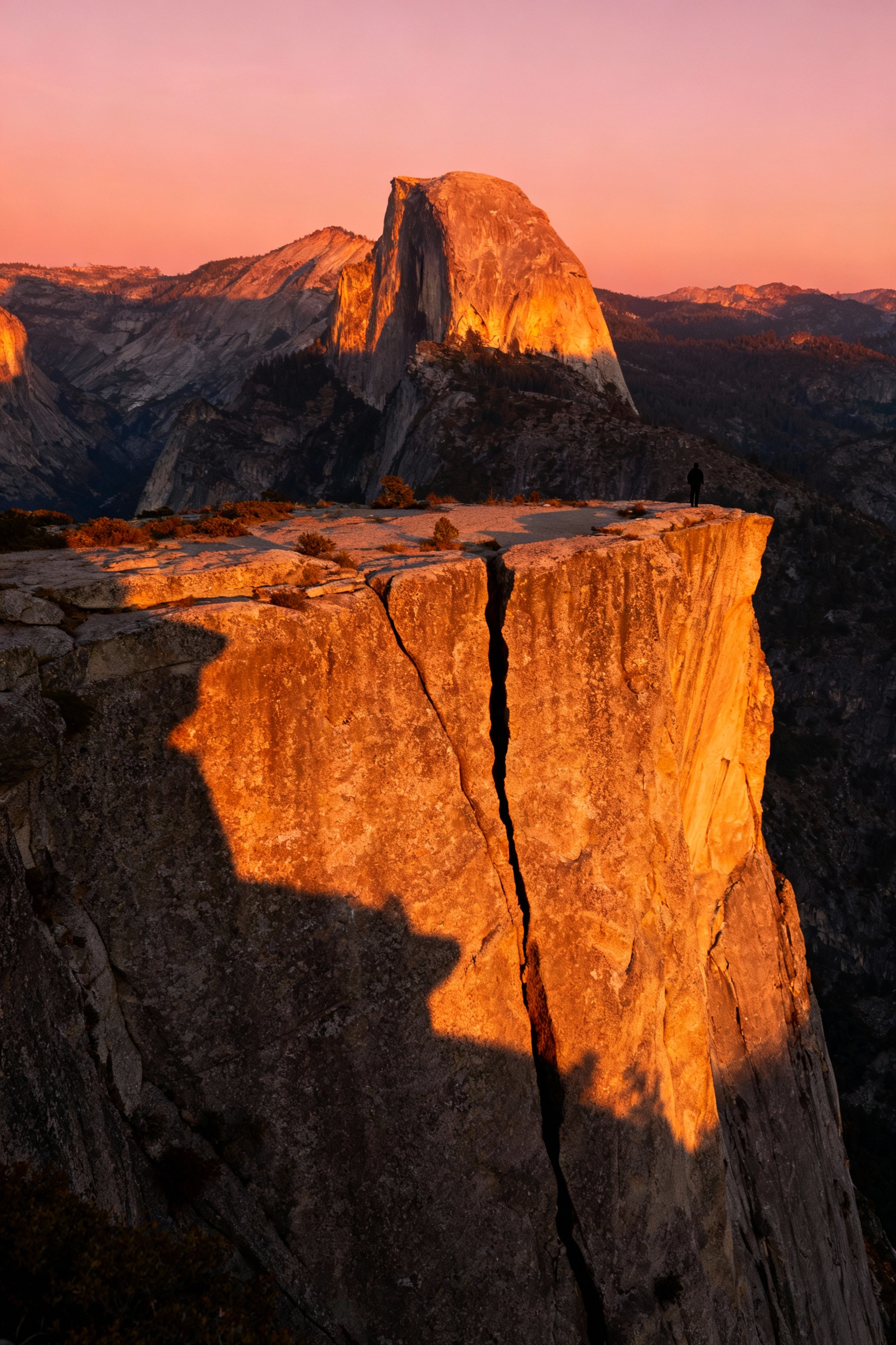 Taft Point delivers huge, jaw-dropping valley views with a relatively easy, flat-ish hike (about 2 miles round trip) that filters out the drive-up crowds. Go 60–90 minutes before sunset so you can claim space near the fissures and still hike back before it’s fully dark. Pack a headlamp (non-negotiable), a warm layer for wind, and traction if there’s early-season ice. Check Glacier Point Road status before you go—seasonal closures can happen, and you’ll want a backup if weather shifts.