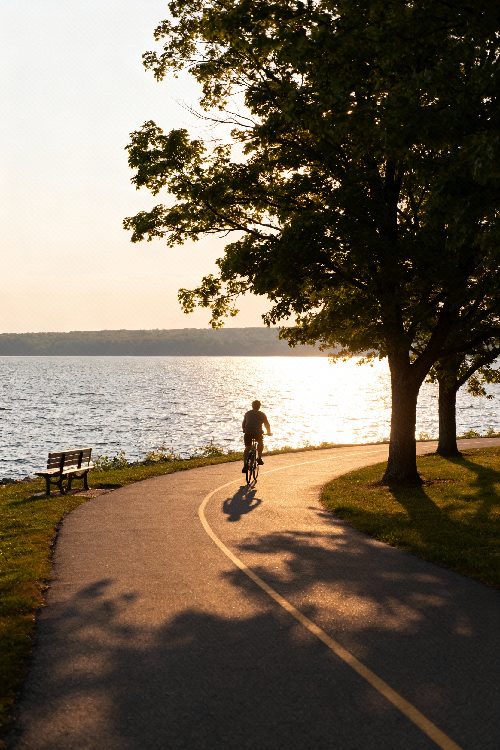 Locals don’t just visit the waterfront—they build their day around it. Walk or rent a bike and cruise the Burlington Greenway for lake views and an easy, scenic workout (sunset here is a must). Pack a windbreaker and sunglasses, and if you’re visiting on a weekend, start earlier to avoid the busiest stretch near the park.