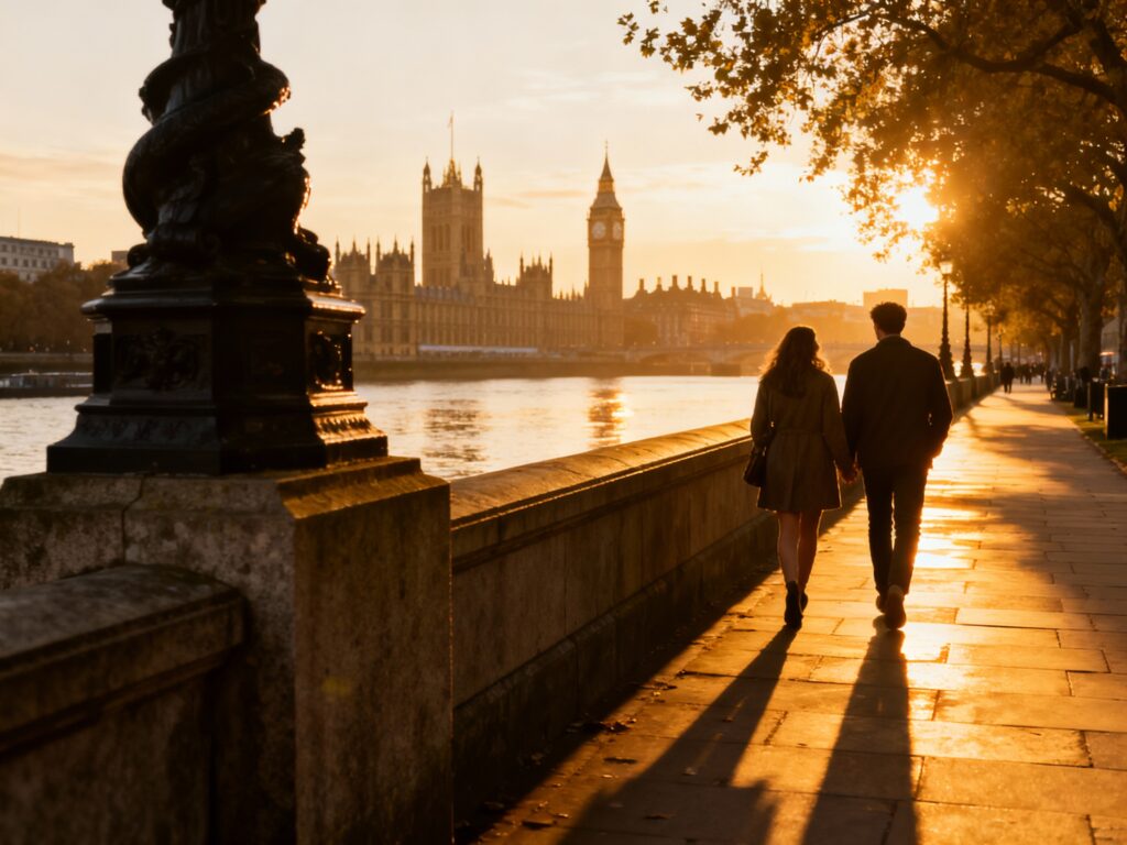 For a classic London date walk, follow the Thames from Westminster toward Tower Bridge—iconic views the whole way. Go around golden hour for the best light, then stop for a warm drink at Borough Market (easy detour via London Bridge). If you want it extra romantic, book a late-afternoon river cruise and walk the rest back on foot. Pack a light layer even in summer—riverside breezes are real.