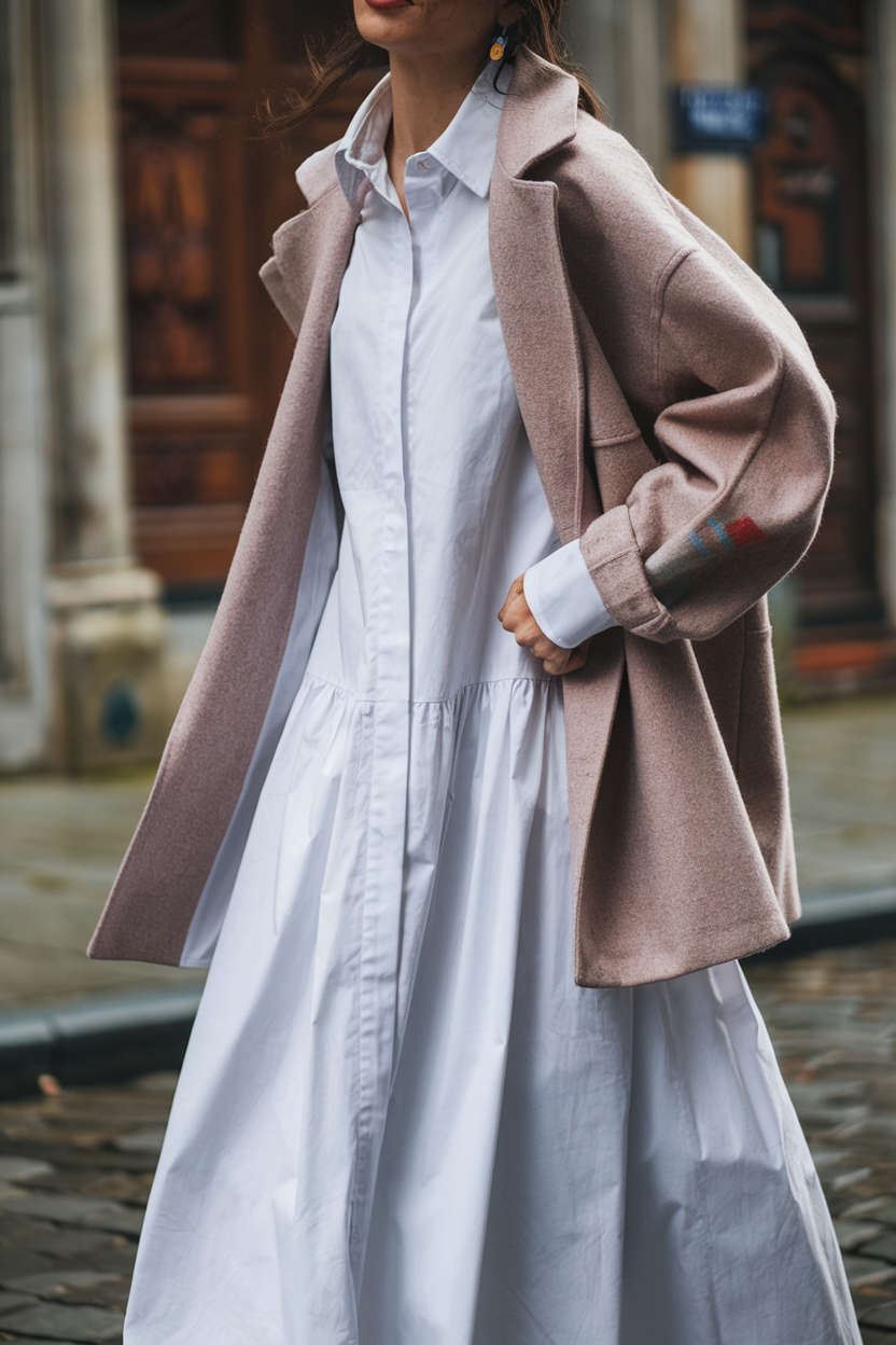 Go for a cotton or cotton-poplin maxi dress that skims the body (not clingy) for airflow and all-day comfort. Layer a cropped denim jacket or a thin knit cardigan over it for chilly restaurants, then finish with white sneakers, a small nylon shoulder bag, and sunglasses. If it’s humid, choose a dress with a slit or looser skirt so it doesn’t stick. Avoid heavy jersey if you run warm—it can trap heat fast.