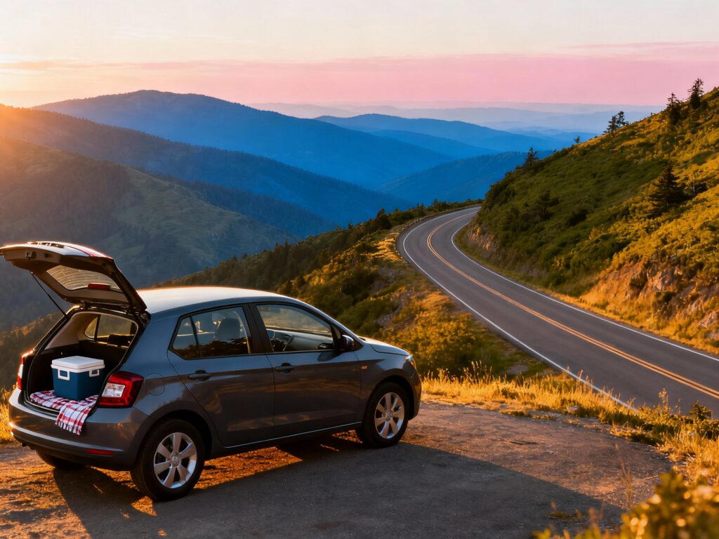 This drive is basically a highlight reel of overlooks, short hikes, and picnic spots—aka free entertainment for days. Go early in the morning for cooler temps and empty pull-offs, then spend midday in Asheville or a smaller town like Boone to refuel. Pack a small cooler, a reusable water bottle, and a light rain jacket (July storms pop up fast in the mountains). For cheap nights, book campgrounds in advance (they fill up) or stay just outside Asheville to dodge the highest rates.