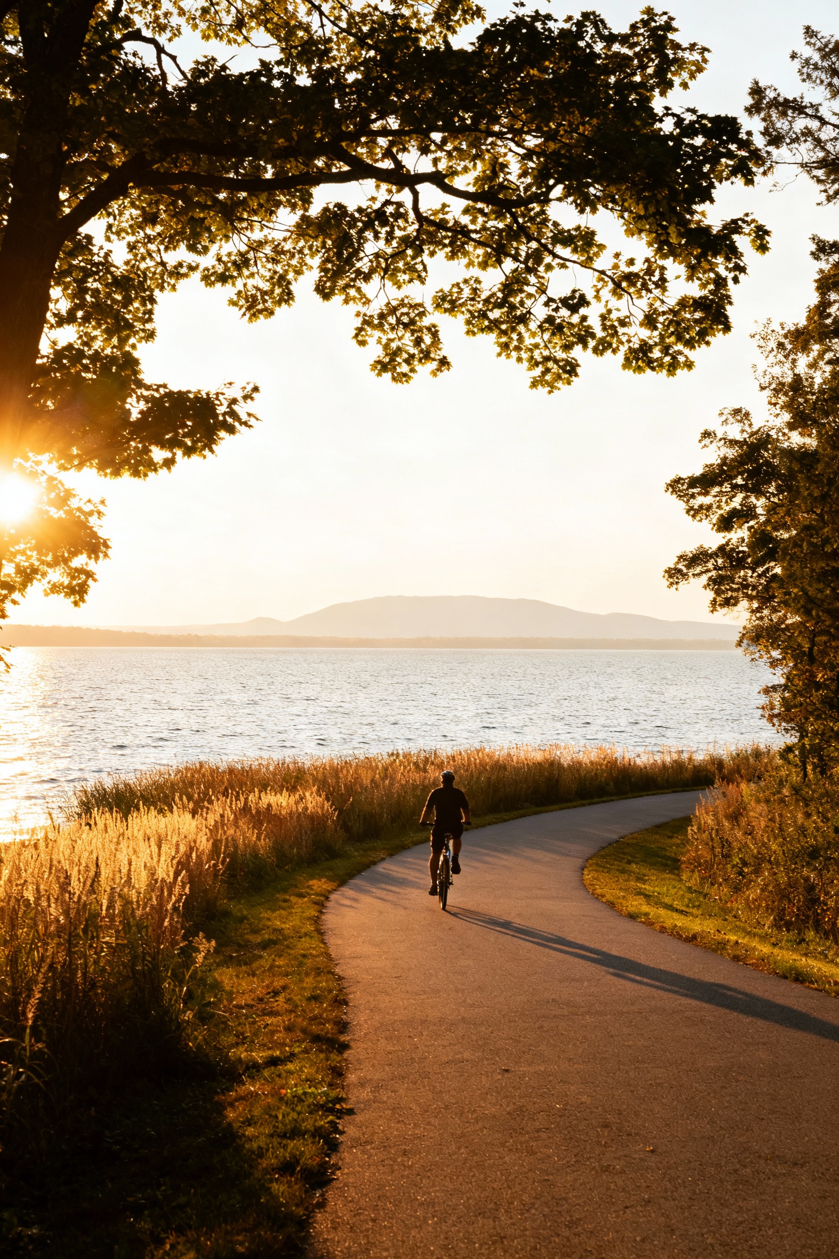 Biking the Burlington Greenway and ending with a sunset at Waterfront Park is the classic combo. It’s easy to plan, doesn’t require advanced reservations, and gives you the lake views Burlington is known for.