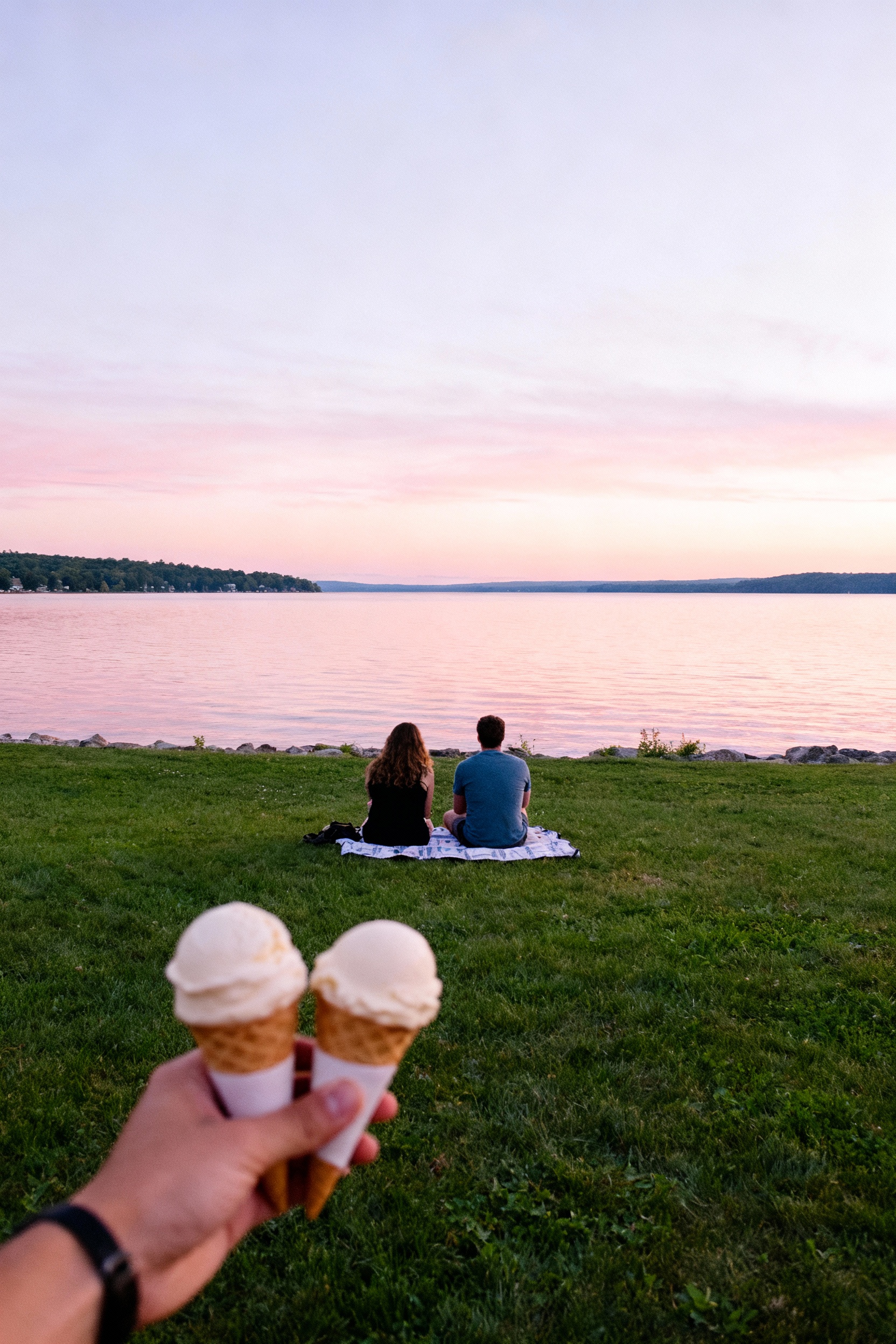 Waterfront Park is Burlington’s easiest win: show up with a drink or snack, find a spot facing the lake, and let the sky do the rest. Sunset is the main event, so check the time and arrive 30–45 minutes early for a good seat—especially on warm nights. Bring a picnic blanket and a light jacket, even if the day felt hot. Afterward, walk back toward downtown for dessert and a low-key evening stroll.
