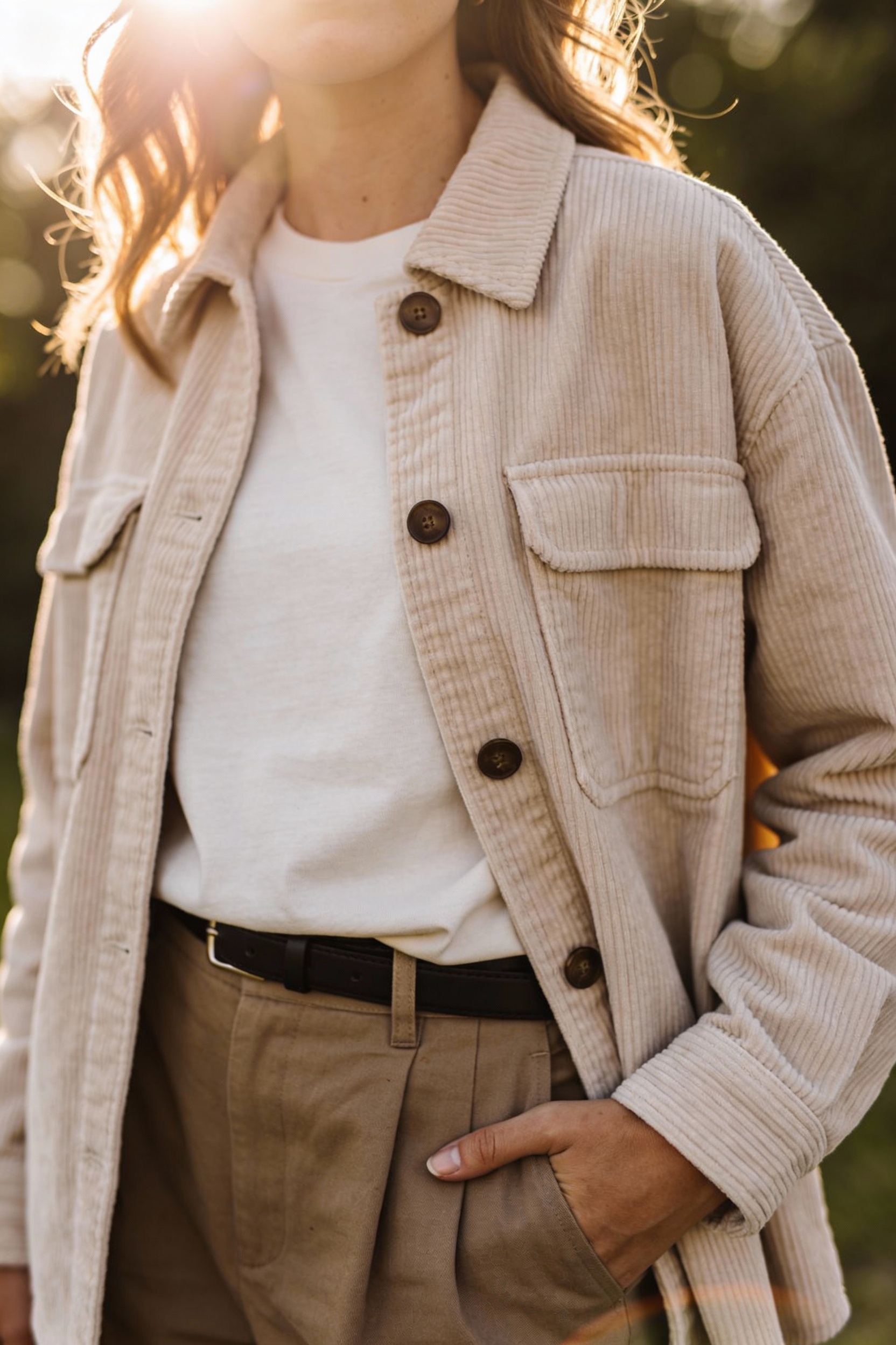 Use a slim base layer (ribbed tee, tank, or lightweight knit), then one warm layer (cardigan or sweater), and one outer layer (trench, utility jacket, or packable puffer). Keep proportions balanced—if your outer layer is oversized, go straighter or more fitted on the bottom. A scarf or cap adds warmth without adding volume.