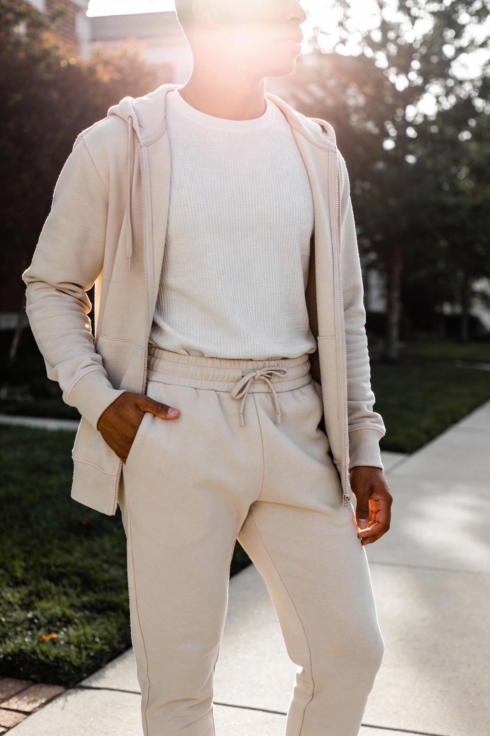 Pair a fitted ribbed tee with tapered joggers in a structured knit, then add a lightweight bomber or denim jacket for temperature swings. Finish with clean leather sneakers, a crossbody bag that zips, and simple hoop earrings for instant polish. For comfort, choose joggers with a smooth waistband and minimal drawstrings so you’re not constantly adjusting. If you run cold, swap the tee for a thin long-sleeve base layer that still fits neatly under the jacket.