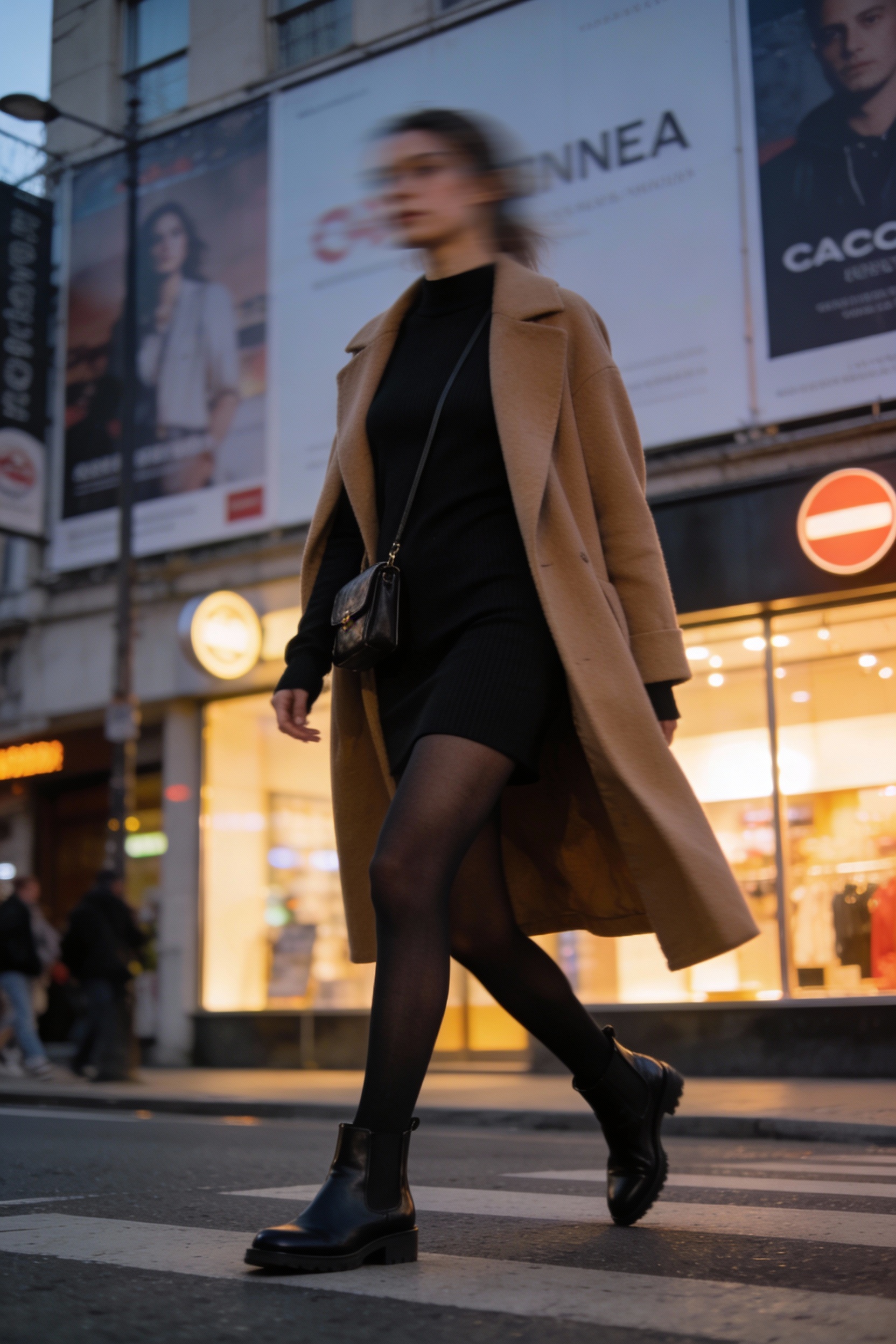 5) Mini Dress Over Tights + Chelsea Boots (City-Ready)