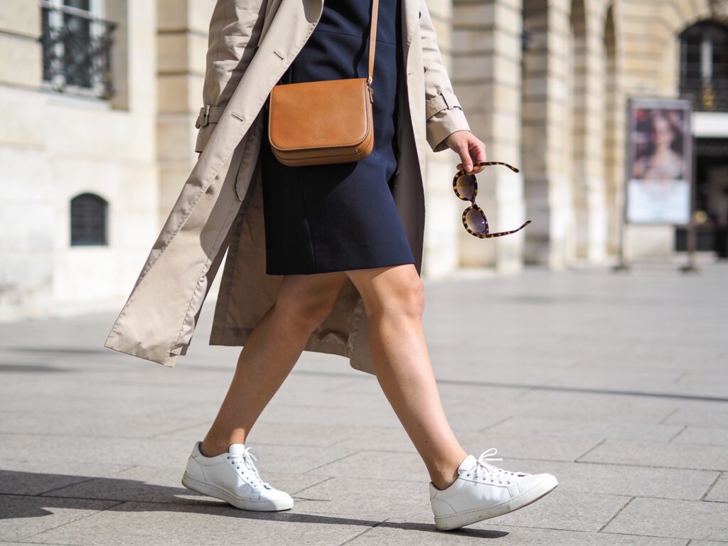 Start with a solid-color shift dress (think navy or cream) and add a lightweight trench or mac for a crisp 60s vibe that still feels current. Finish with white leather sneakers, a structured crossbody bag, and oversized sunglasses as your one statement accessory. If it’s warm, choose a sleeveless shift in a thicker knit so it doesn’t wrinkle in your suitcase. Comfort tip: pack no-show socks and add blister pads to your day bag if you’ll be walking a lot.
