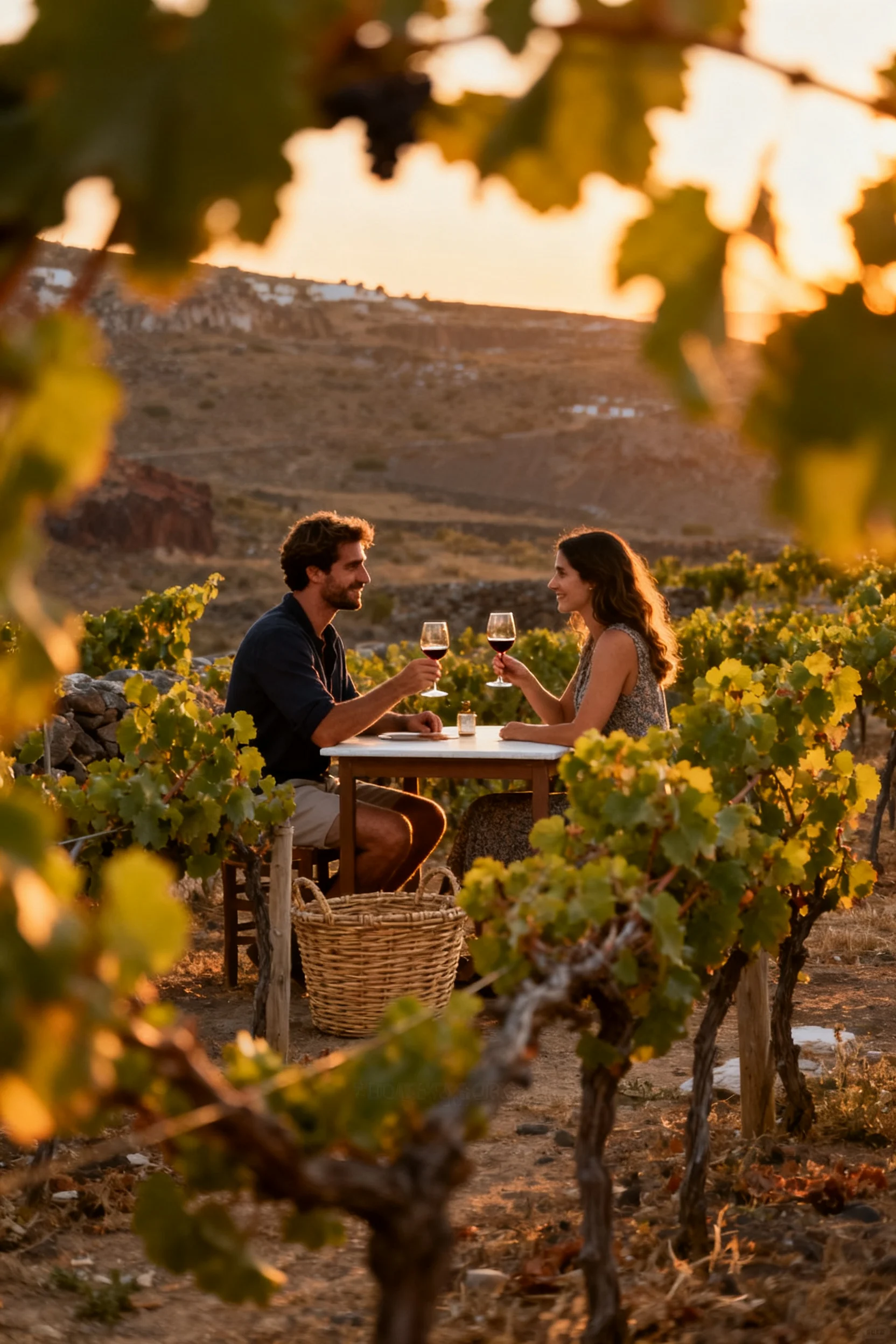Santorini’s wines are part of the magic because the grapes grow in basket-shaped vines designed to survive the island’s wind and sun. Head inland to Pyrgos or Megalochori for a slower, more local vibe, then book a tasting that includes Assyrtiko (crisp and mineral) and Vinsanto (sweet, iconic). Plan for late afternoon so you can roll straight into sunset views without rushing, and eat beforehand if you’re doing multiple wineries. Skip driving yourself—taxis can be limited—so pre-book a transfer or join a small wine tour.